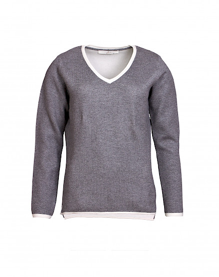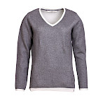 Fein gestrickter Doubleface Pullover, innenseitig in Kontrastfarbe cream gestrickt.