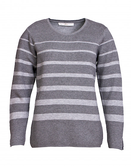 Fein gestrickter Pullover im trendigem Ringel Dessin als Doubleface.
