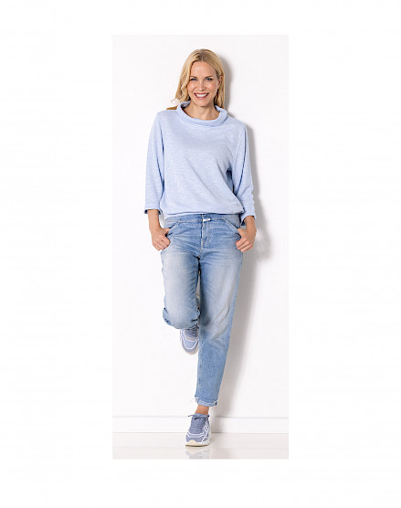 Lieferbar in den Farben: 427 navy, 458 jeans melange, 524 oliv melange, 538 green melange und 828 purple melange